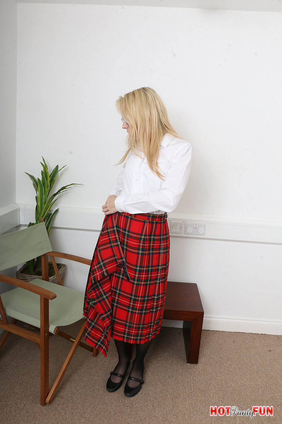 | blonde, brunette, high heels, hot panty fun, hotpantyfun.com, lingerie, panty, stockings, tease, uniform |