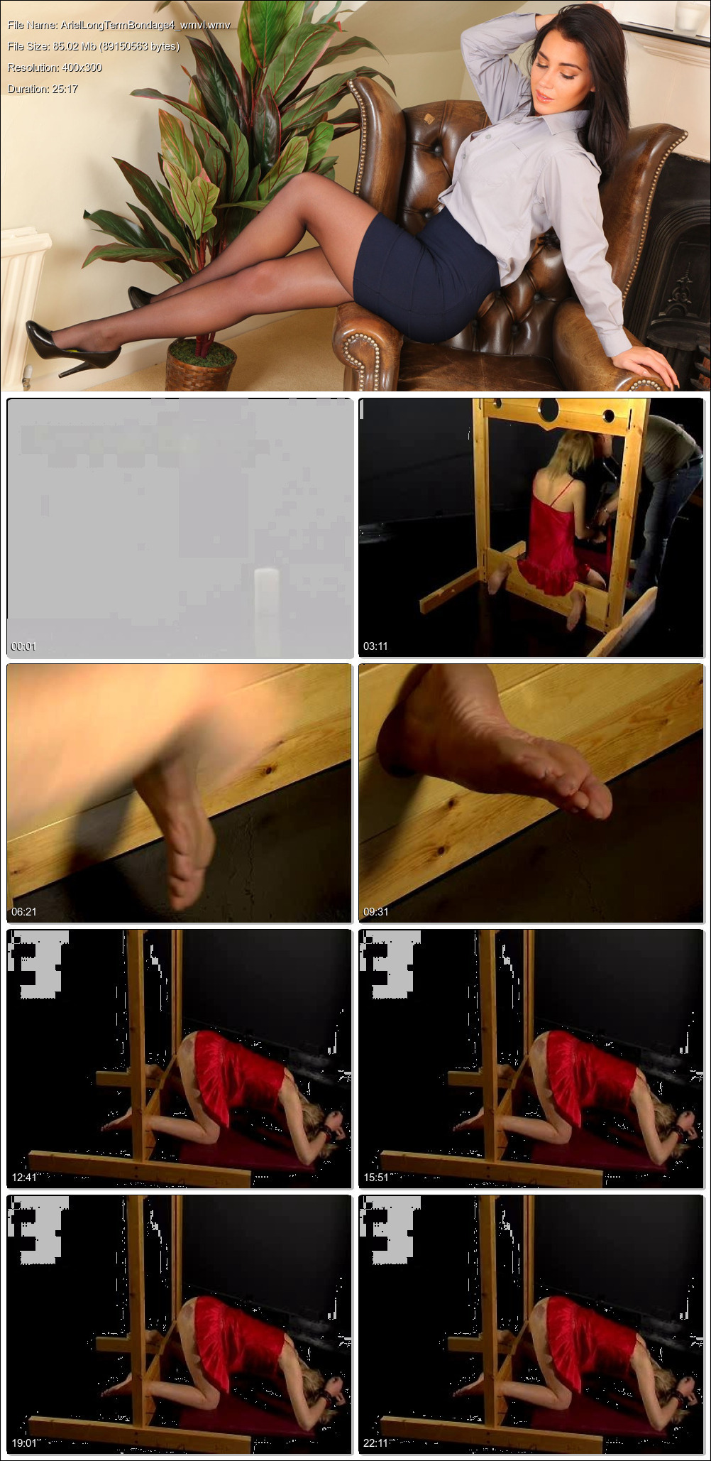 Long Term Bondage Video (25:18 minute video) starring Ariel Anderssen added 1 January 2008 in the fourth part of our long-term bondage, poor Ariel discovers what her torturer has in store for her second demerit- a brutal bastinado. Ariel had never experienced the delicious agony of being whipped on the soles of her bare feet before... come inside and let her tell you about it in her own words!